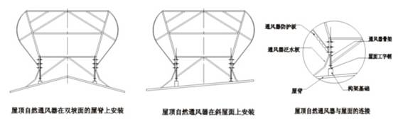 屋頂通風器安裝在用戶提供的基礎構架上,構架面應做成水平?梢詥闻挪贾茫部呻p排布置,可布置在雙坡屋面的屋脊處,也可布置在斜屋面上。屋頂通風器安裝完畢后,應作防水處理。